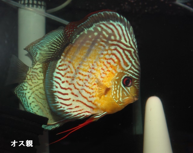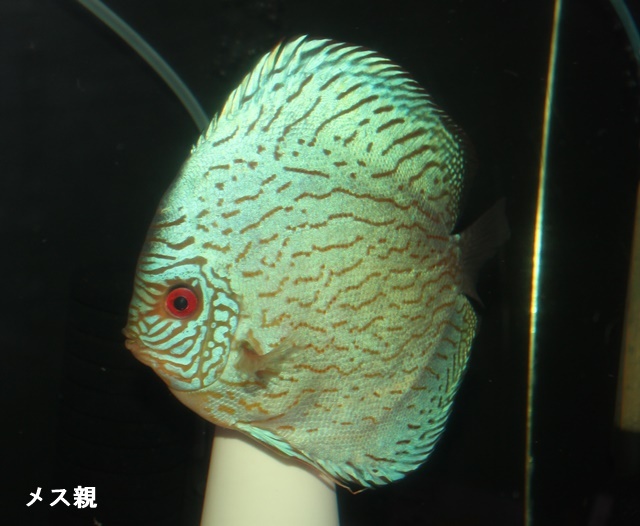 餌はアクアマイスターオリジナルディスカスハンバーグ(スピルリナ・ガーリック)とベンリーパック食品の冷凍赤虫を与えております。